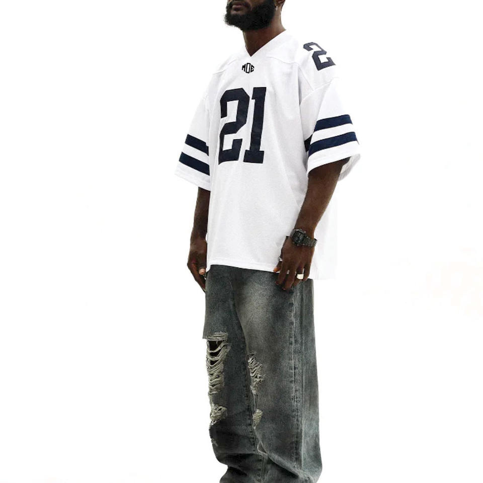 เสื้อฟุตบอลอเมริกันคุณภาพพรีเมียมสำหรับผู้ชาย ทรงโอเวอร์ไซส์ ผ้าตาข่าย ชุดทีมพิมพ์หมายเลขตามสั่ง รับผลิตแบบ OEM จำนวนมาก