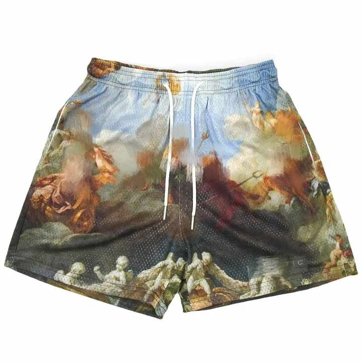 กางเกงวิ่งขาสั้นสำหรับผู้ชายกางเกงวิ่งขาสั้นผ้าโพลีเอสเตอร์พิมพ์โลโก้แบบลำลอง