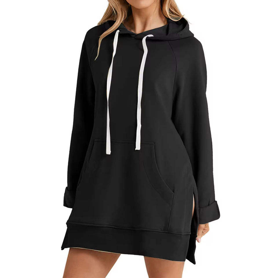เสื้อฮู้ดสวมหัวตัวยาวแบบลำลองของผู้ชายผ้าฟลีซลายนูนระบายอากาศได้ดีผ้าฝ้าย100% สีทึบซับในด้านหน้าสำหรับฤดูหนาว