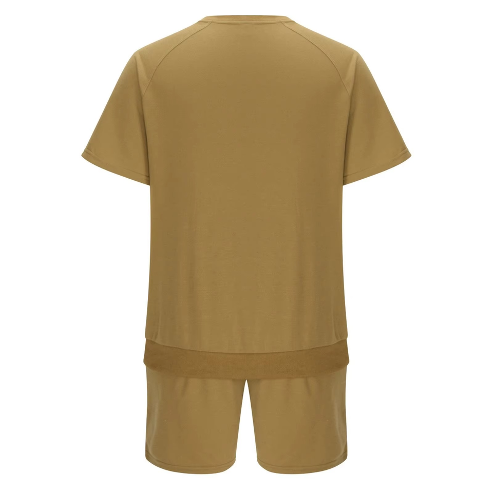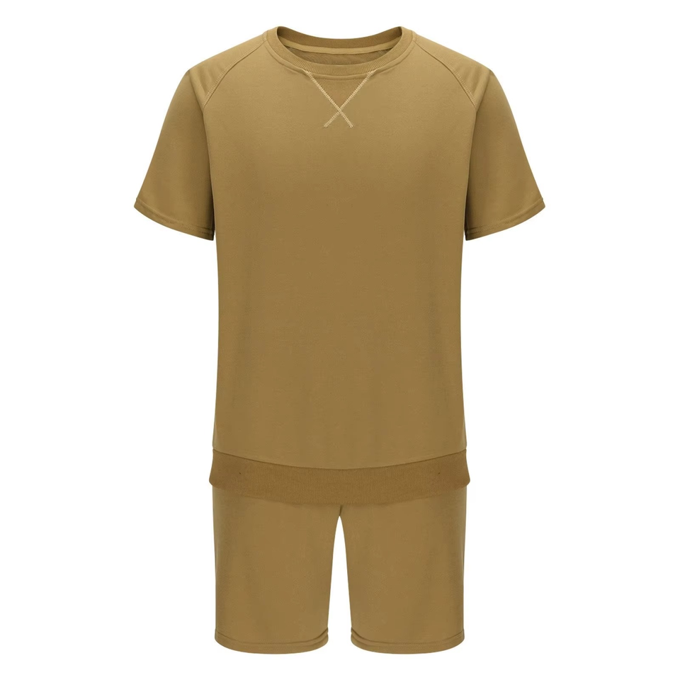 เสื้อยืดและกางเกงขาสั้นสไตล์วินเทจสำหรับผู้ชาย คุณภาพพรีเมียม เป็นมิตรกับสิ่งแวดล้อม ชุดคู่ 2 ชิ้น ไซส์พลัส เสื้อผ้าลำลองสำหรับฤดูร้อน