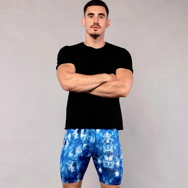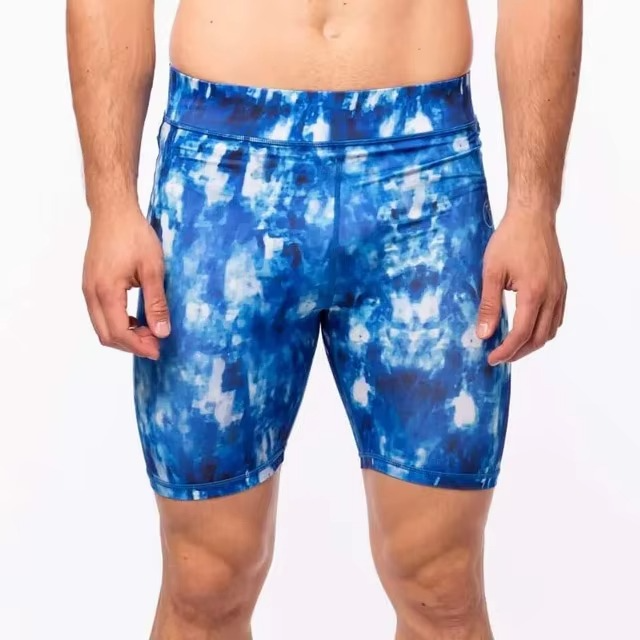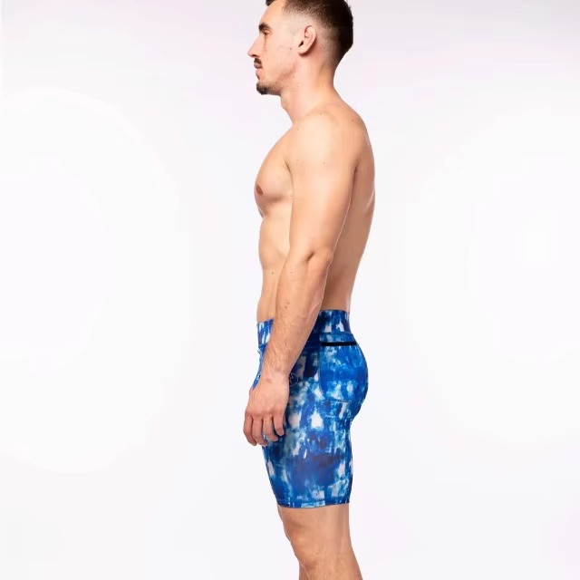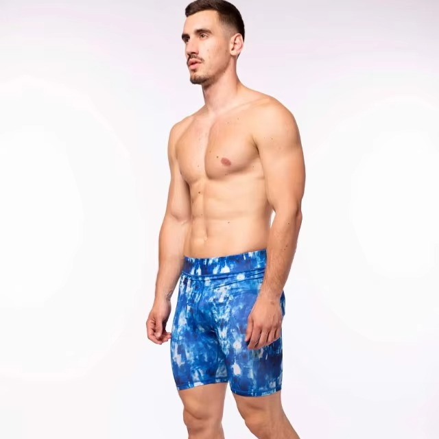 กางเกงขาสั้นรัดรูปของผู้ชายผ้านิ่มขนาดใหญ่พิเศษแห้งเร็วพิมพ์ลายแบบระเหิดใส่สบายสไตล์ลำลอง