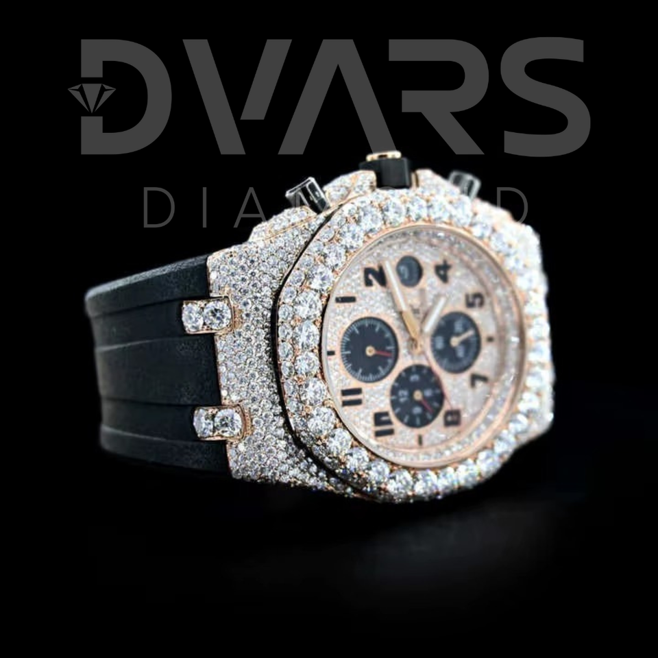 นาฬิกาสแตนเลสสตีลคุณภาพสูงสำหรับผู้ชายนาฬิกากระจกเต็มจอแบบแอนะล็อก VVS Moissanite สุดหรู