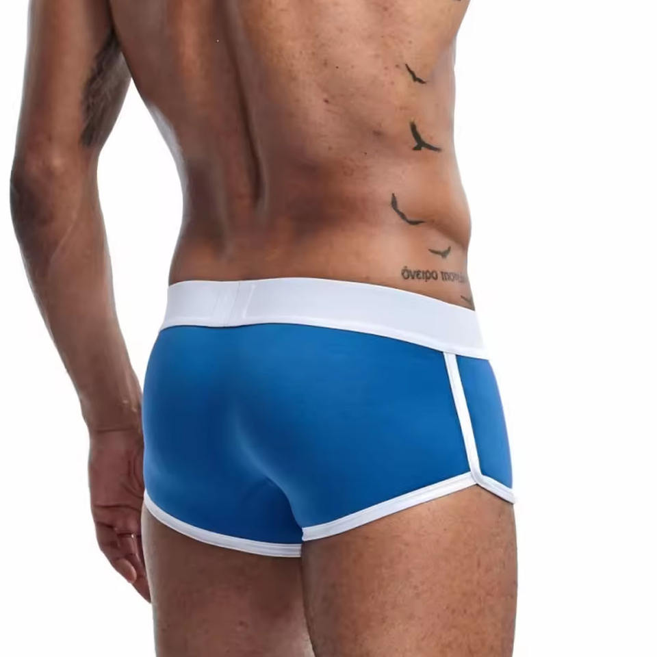 กางเกงบ็อกเซอร์ระดับกลางของผู้ชายผ้าฝ้าย95% สีทึบระบายอากาศได้ดี5% สแปนเด็กซ์โลโก้ตามสั่ง