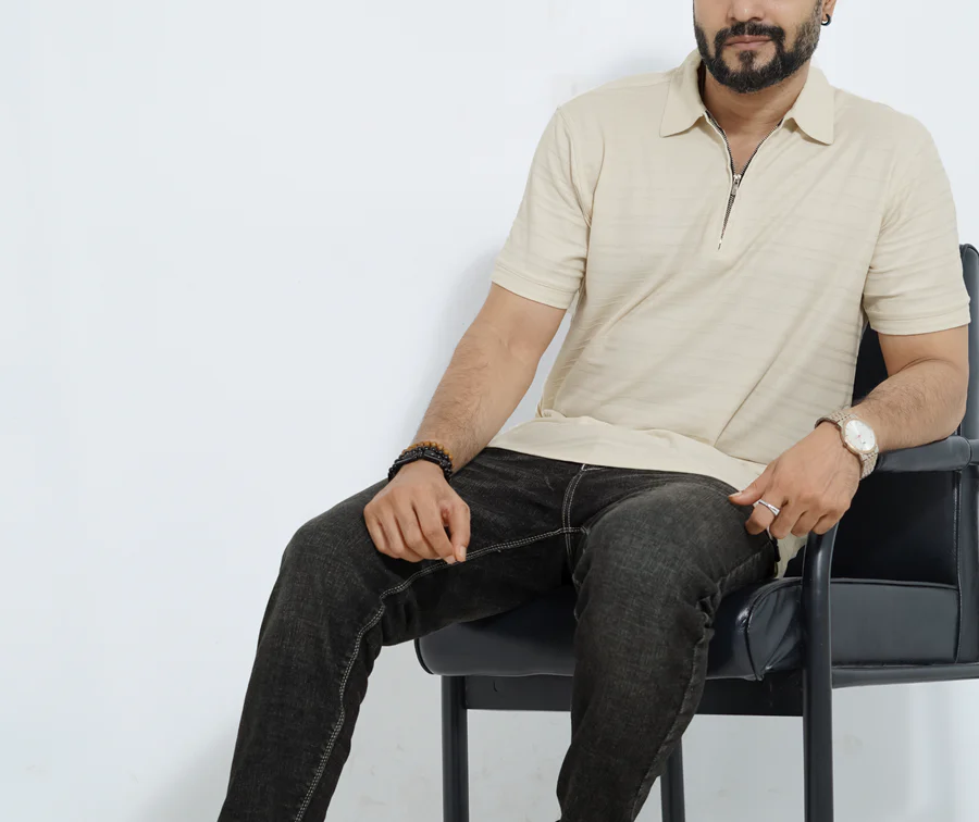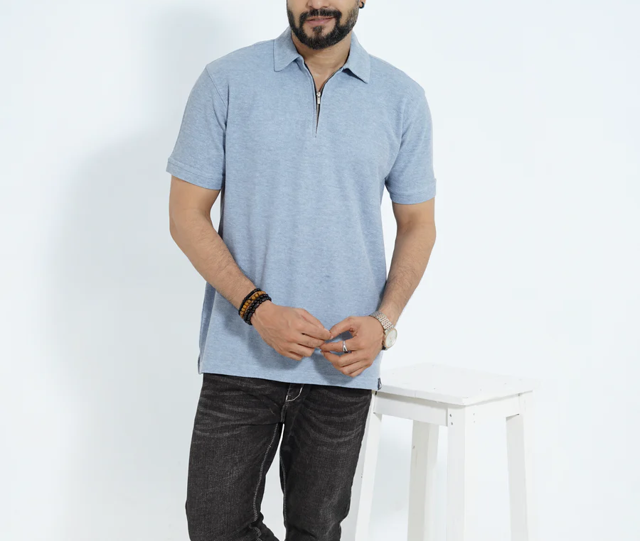 เสื้อเชิ้ตผู้ชายคุณภาพพรีเมียม ผ้าถัก 50% คอตตอน/50% โพลีเอสเตอร์ 220 GSM เป็นมิตรกับสิ่งแวดล้อม ผลิตในบังกลาเทศ รับสกรีนโลโก้ 1/4