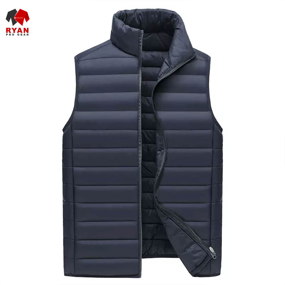 เสื้อกั๊กพัฟเฟอร์ผู้ชายคุณภาพพรีเมียม เนื้อผ้านุ่มสบาย ระบายอากาศได้ดี พร้อมโลโก้สั่งทำได้ สวมใส่สบายๆ
