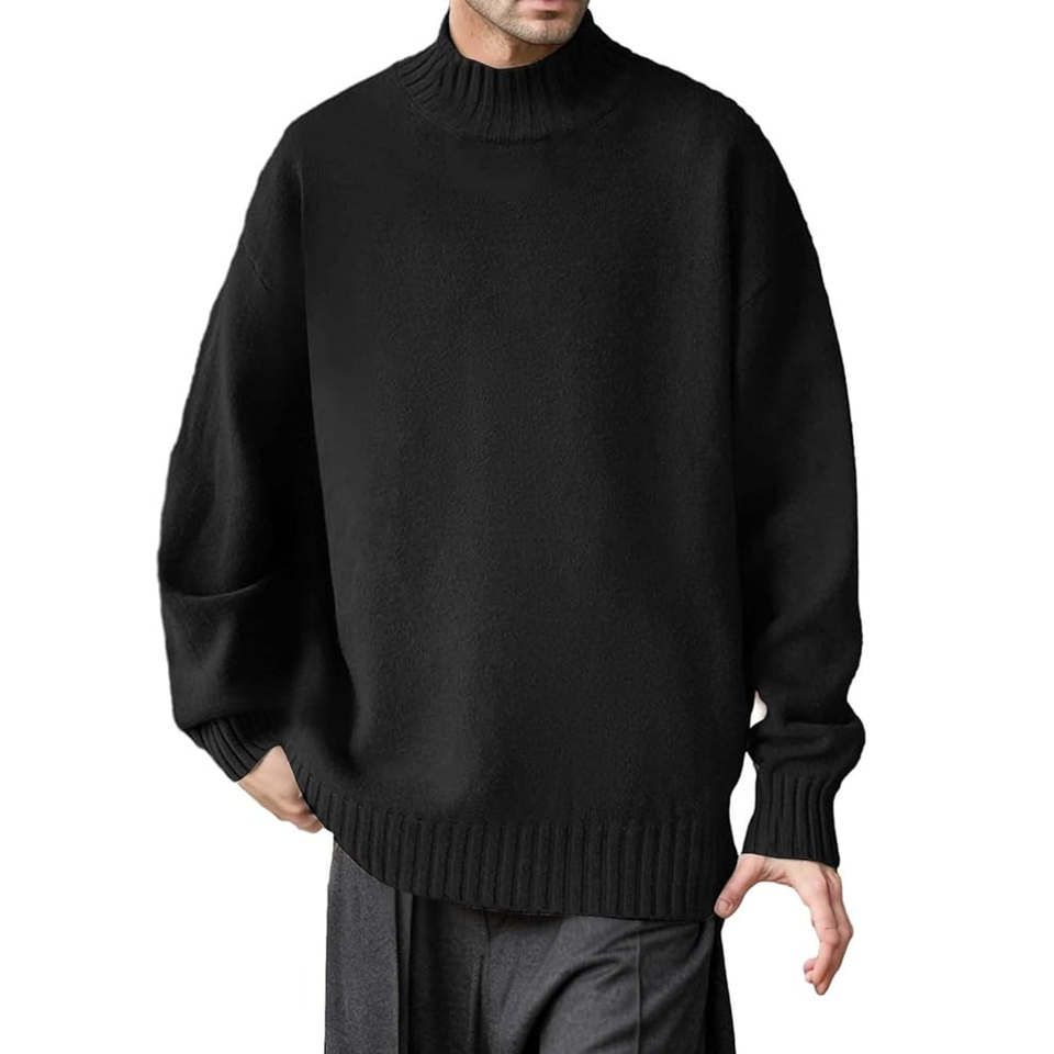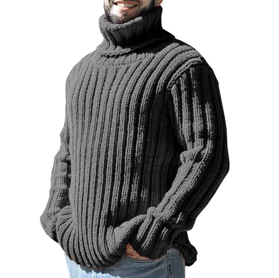 เสื้อสเวตเตอร์คอเต่าของผู้ชายเสื้อสวมหัวแบบลำลองระบายอากาศหนาและอบอุ่นมีคุณภาพสีพื้นดีไซน์คอเต่า