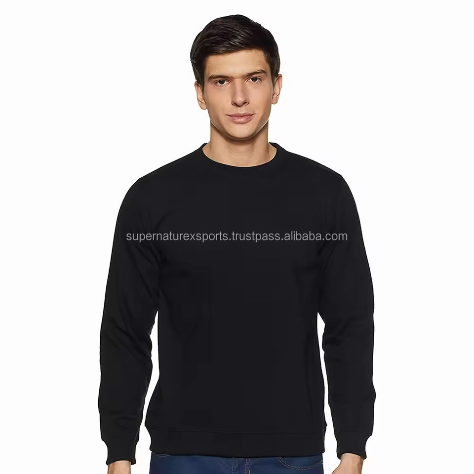 เสื้อสเวตเตอร์แบบสวมหัวสำหรับผู้ชายผ้าฝ้ายสีดำ/โพลีเอสเตอร์ขนแกะสีทึบพิมพ์โลโก้ตามสั่งสำหรับฤดูหนาว