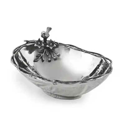 ชามเสิร์ฟอาหารสแตนเลสทรงกลมทำจากโลหะชามตอกรูปใบไม้ดีไซน์พรีเมี่ยมชามใส่ช็อคโกแลตผลไม้
