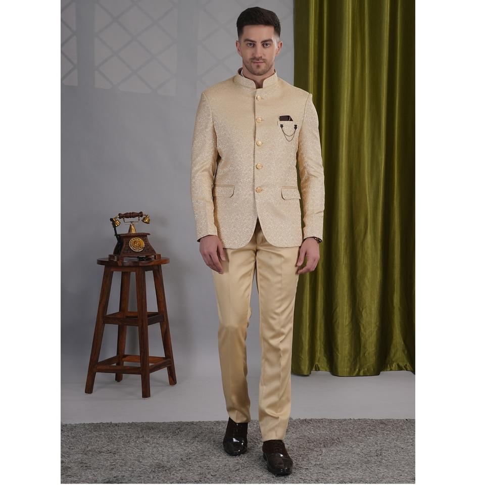 ชุดสูทผู้ชายสีเบจทันสมัยคุณภาพพรีเมียม แบบ 2 ชิ้น ทรงเข้ารูปทันสมัย เหมาะสำหรับงานเลี้ยงบริษัท งานกลางคืน และงานแต่งงาน มีจำหน่าย