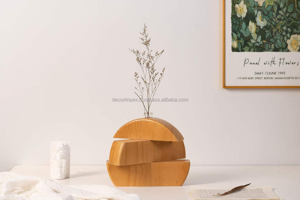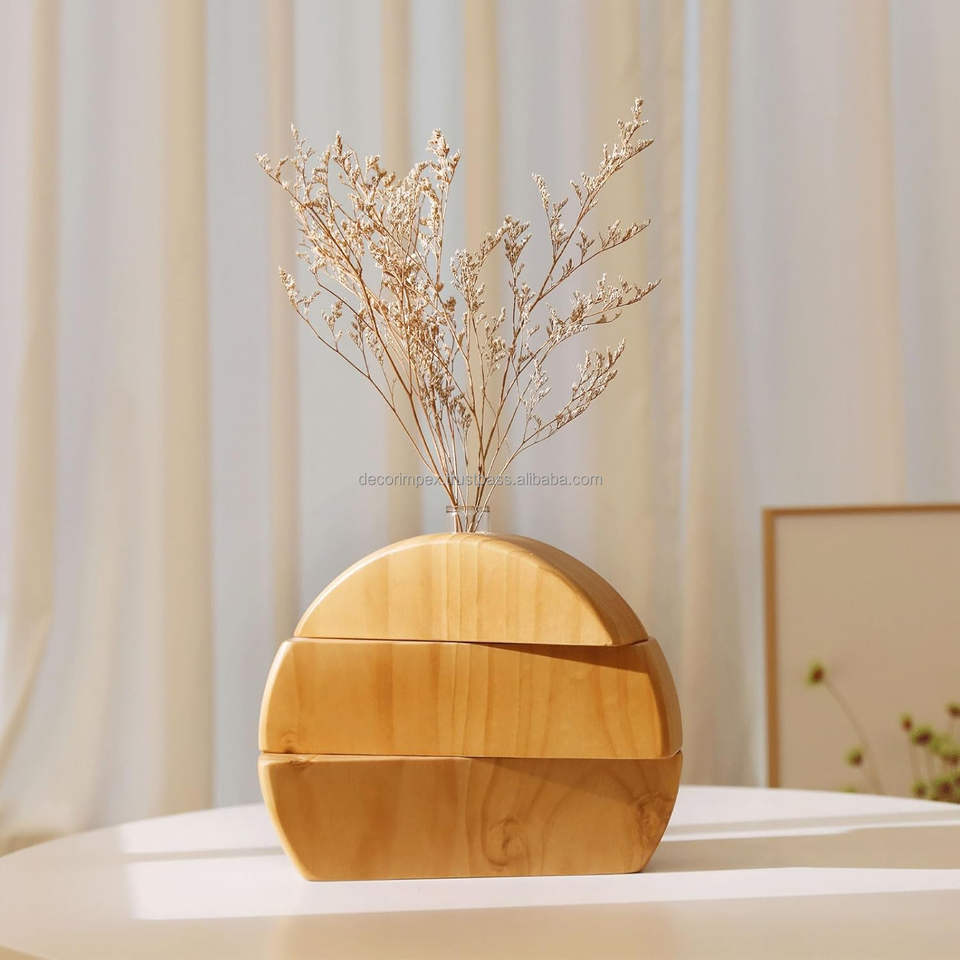 แจกันดอกไม้ทำจากไม้ดีไซน์ทันสมัยคุณภาพพรีเมียมสำหรับตกแต่งภายในงานแต่งงานตัวเลือกของขวัญสุดพิเศษจากผู้ผลิตอินเดีย