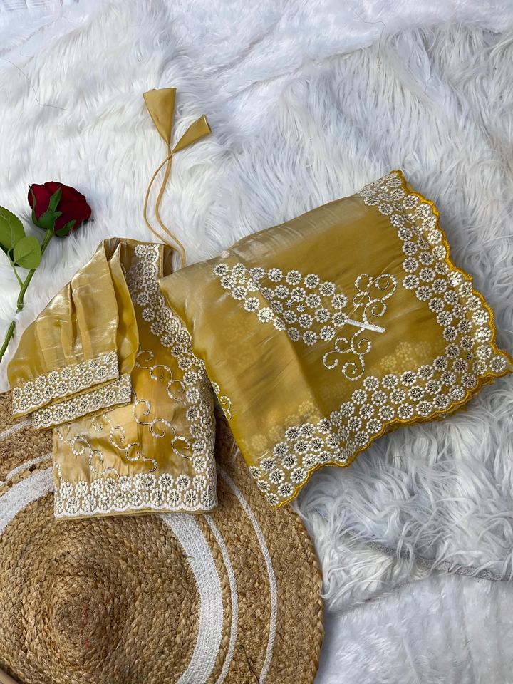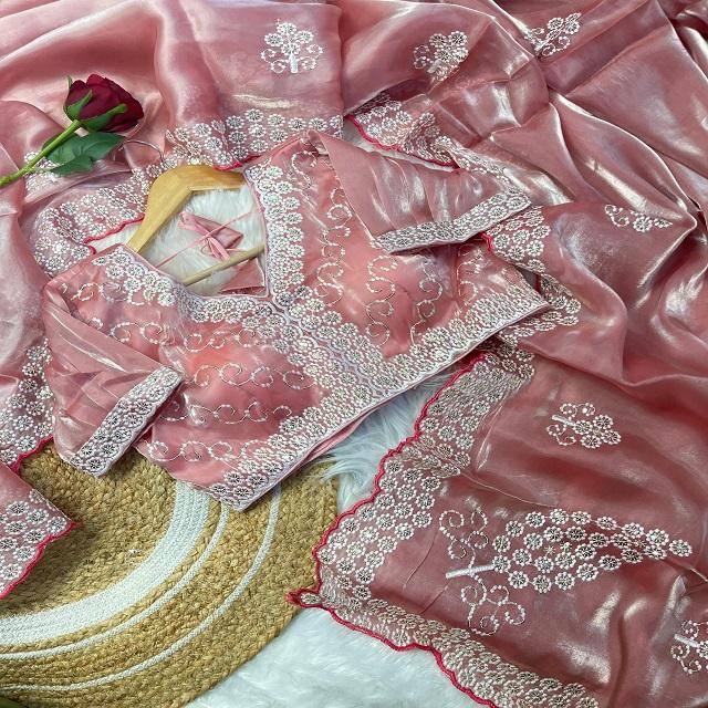 ชื่อผลิตภัณฑ์:ส่าหรีผ้าไหม zimmy นุ่มทันสมัยพร้อมงานปักลำดับ3มม.