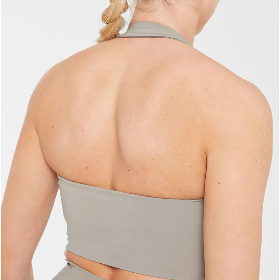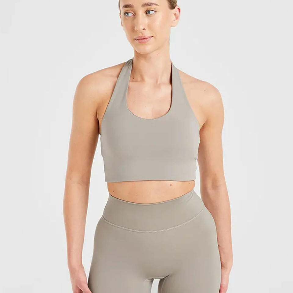 Premium Quality Muted Taupe Women Halternack Crop Top Stretchy Buttery Soft Lightweight Fitness Workout Crop Top Tees for Women