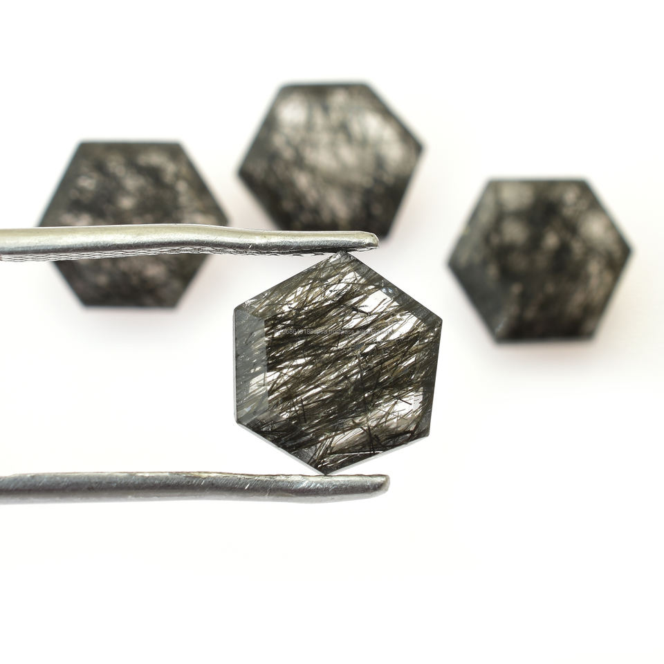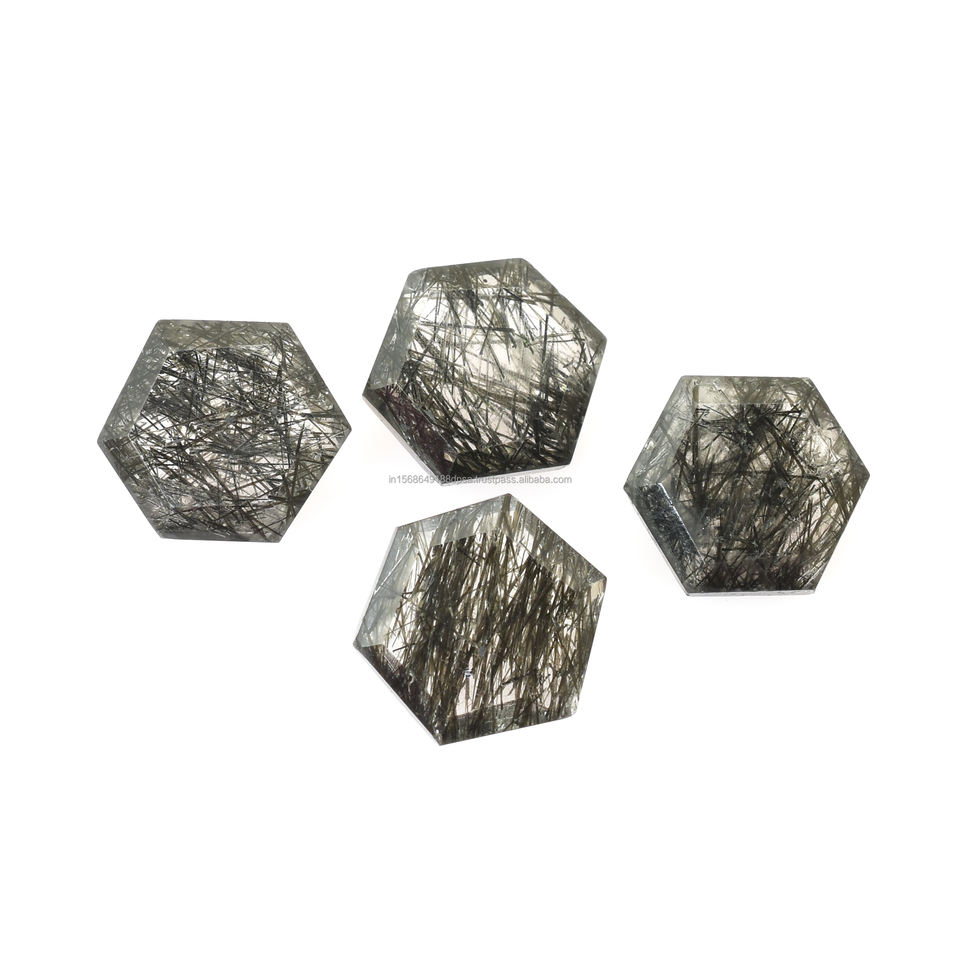 อัญมณีรูปหกเหลี่ยมเจียระไนแบบเหลี่ยมเพชรพลอยดำธรรมชาติขนาด10มม. สำหรับทำสร้อยคอต่างหูเครื่องประดับ