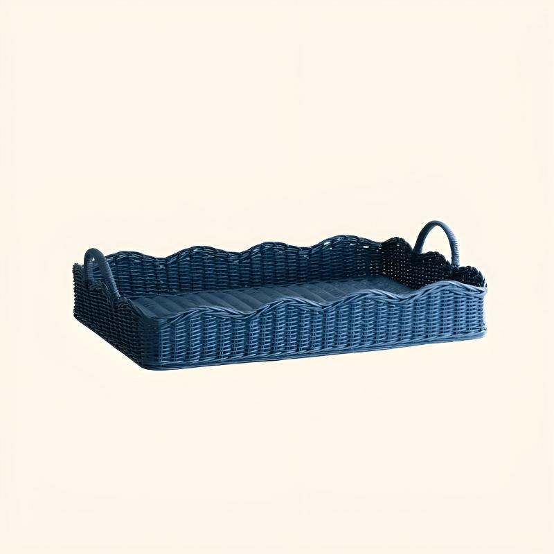ถาดเสิร์ฟหวายธรรมชาติคุณภาพพรีเมียม พร้อมหูจับไม้สไตล์เรียบง่าย สำหรับใส่ขนม ชา หรือของใช้ในครัว