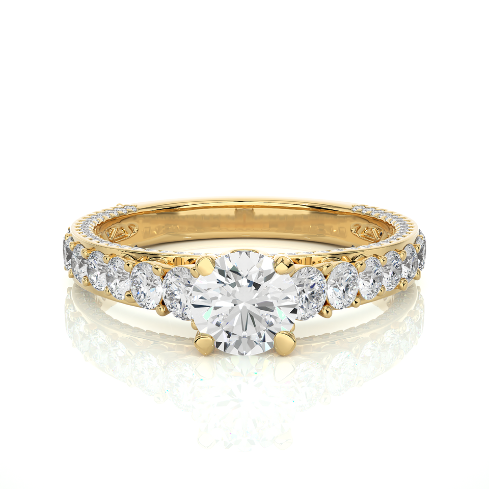 แหวนเพชรดีไซน์หรูหรา ชุบทอง 14K เพชรธรรมชาติ คุณภาพพรีเมียม พร้อมใบรับรอง IGI แหวนเพชรแต่งงานจากอินเดีย
