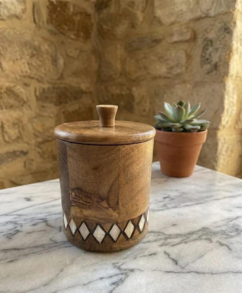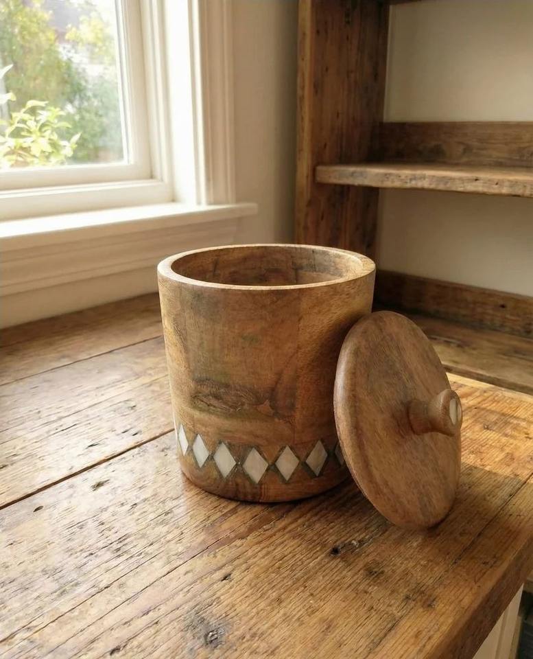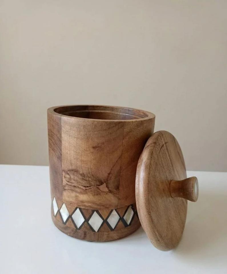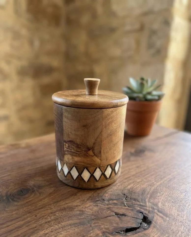 กล่องใส่เครื่องเทศไม้เนื้อแข็งคุณภาพพรีเมียม งานฝีมือธรรมชาติ พร้อมช้อน ผลิตจากโรงงานในอินเดีย