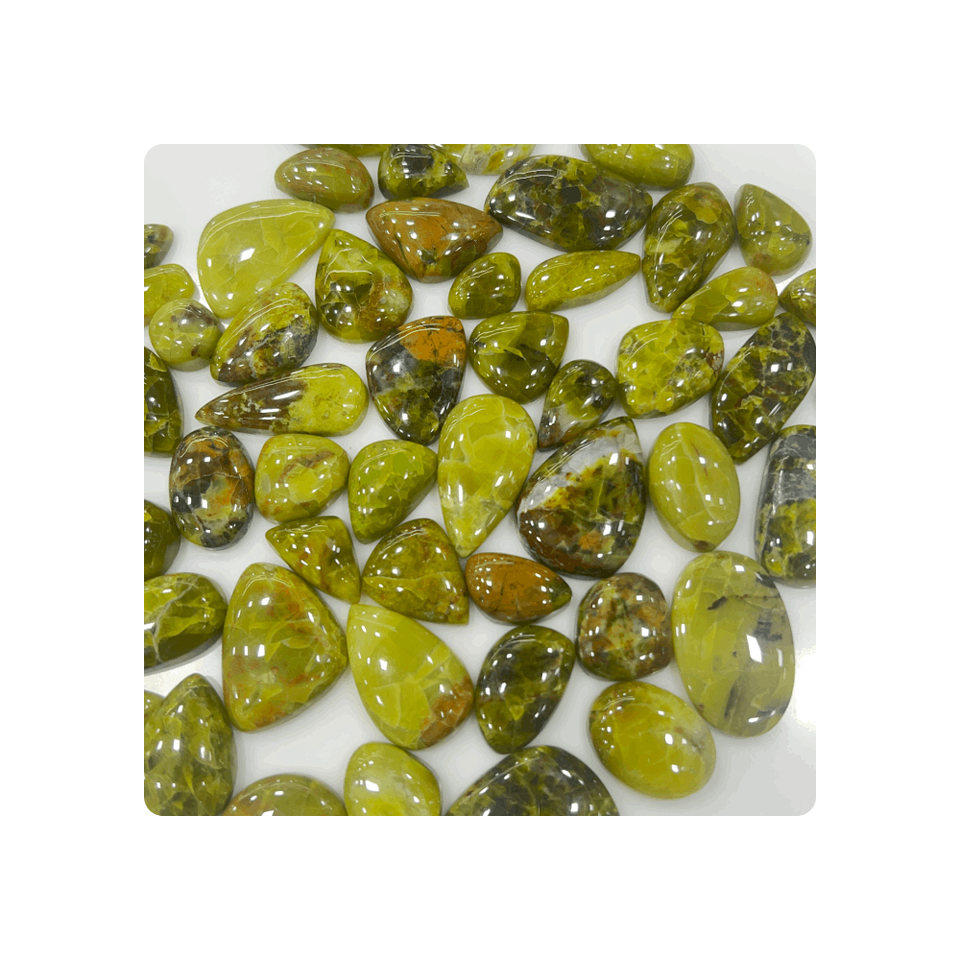 อัญมณีทรงหลังเบี้ยสีเขียวโอปอลธรรมชาติคุณภาพสูงแบบหลวมสำหรับทำเครื่องประดับ