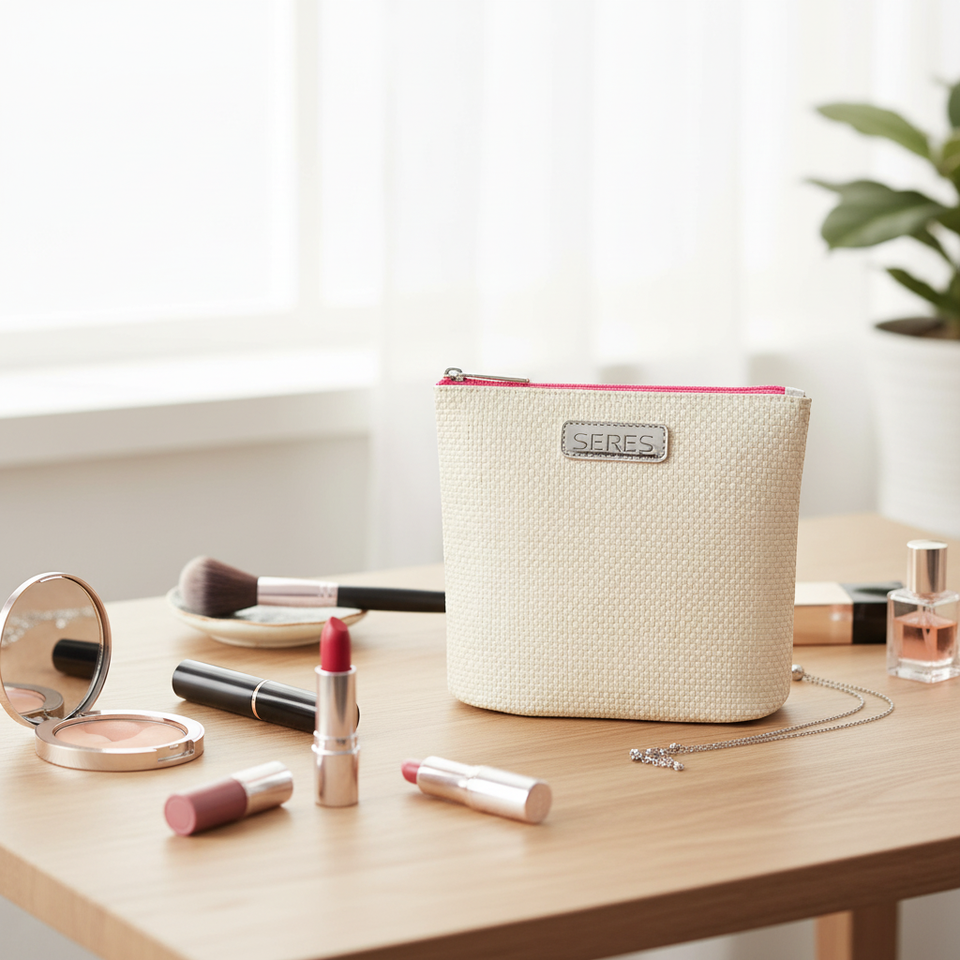 กระเป๋าเครื่องสำอางคุณภาพพรีเมียม ทำจากวัสดุธรรมชาติ พร้อมซิปปิด ขนาด 7x6x2 นิ้ว ใช้จัดเก็บเครื่องสำอางและของใช้สำหรับเดินทาง เหมาะสำหรับเป็นของขวัญส่งเสริมการขาย