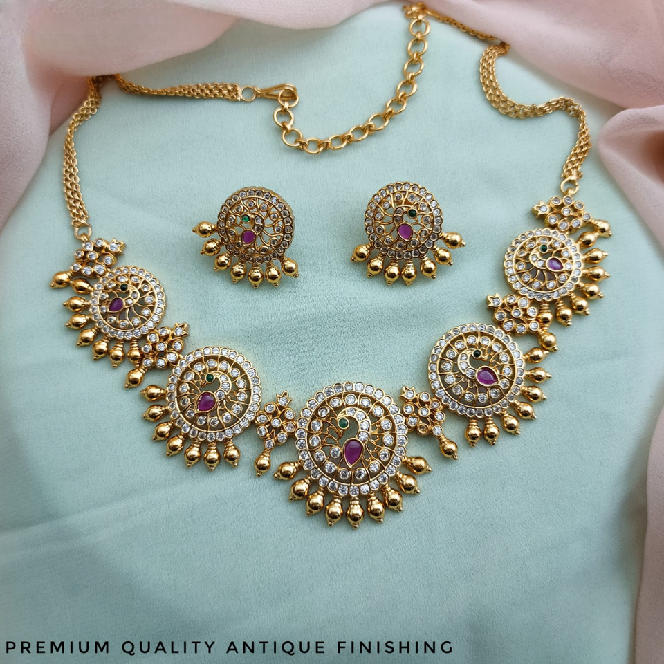 สร้อยคอพร้อมต่างหูดีไซน์นกยูงสวยงาม
