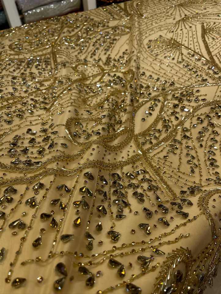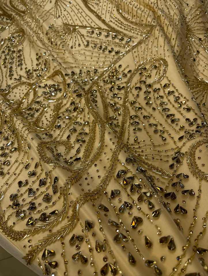 ผ้าลูกไม้เน็ตคุณภาพพรีเมียม พร้อมงานปักลูกปัด สำหรับชุดเจ้าสาว ชุดหรูหรา ชุดออกงาน และเสื้อผ้าออกแบบตามสั่ง