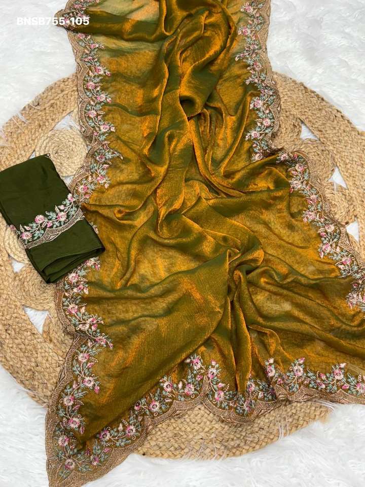 ผ้าซารีชีฟอง Fendy คุณภาพพรีเมียม ดีไซน์ใหม่ สวยงาม เหมาะสำหรับงานเทศกาล พร้อมงานปัก จากซูรัต
