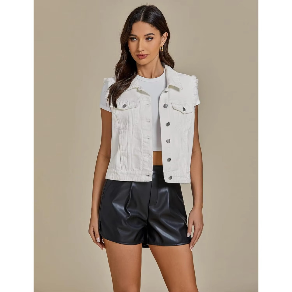 เสื้อกั๊กยีนส์แฟชั่นดีไซน์ใหม่ คุณภาพพรีเมียม แบบไม่มีแขน สำหรับทั้งชายและหญิง เสื้อกั๊กยีนส์คาวบอยผู้หญิง เสื้อกั๊กยีนส์มีฮู้ดสำหรับผู้หญิง