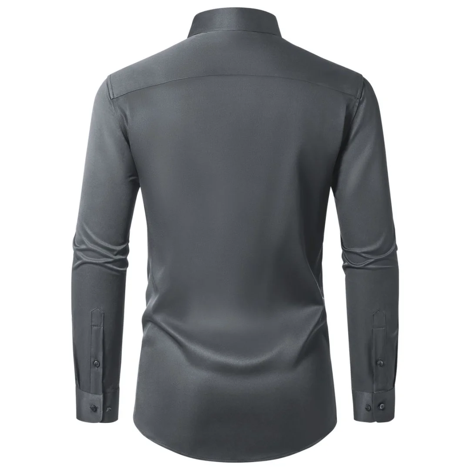 เสื้อเชิ้ตทางการสำหรับผู้ชายทรงสลิมฟิตสีพื้นเสื้อใส่สบาย