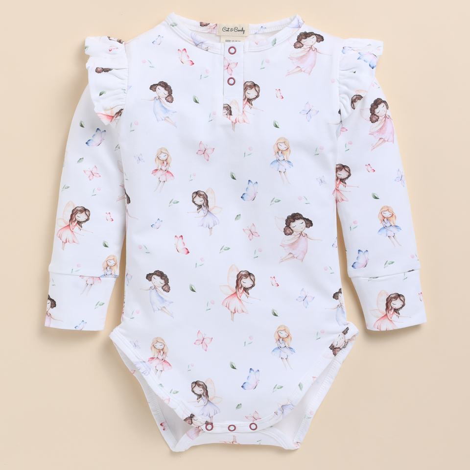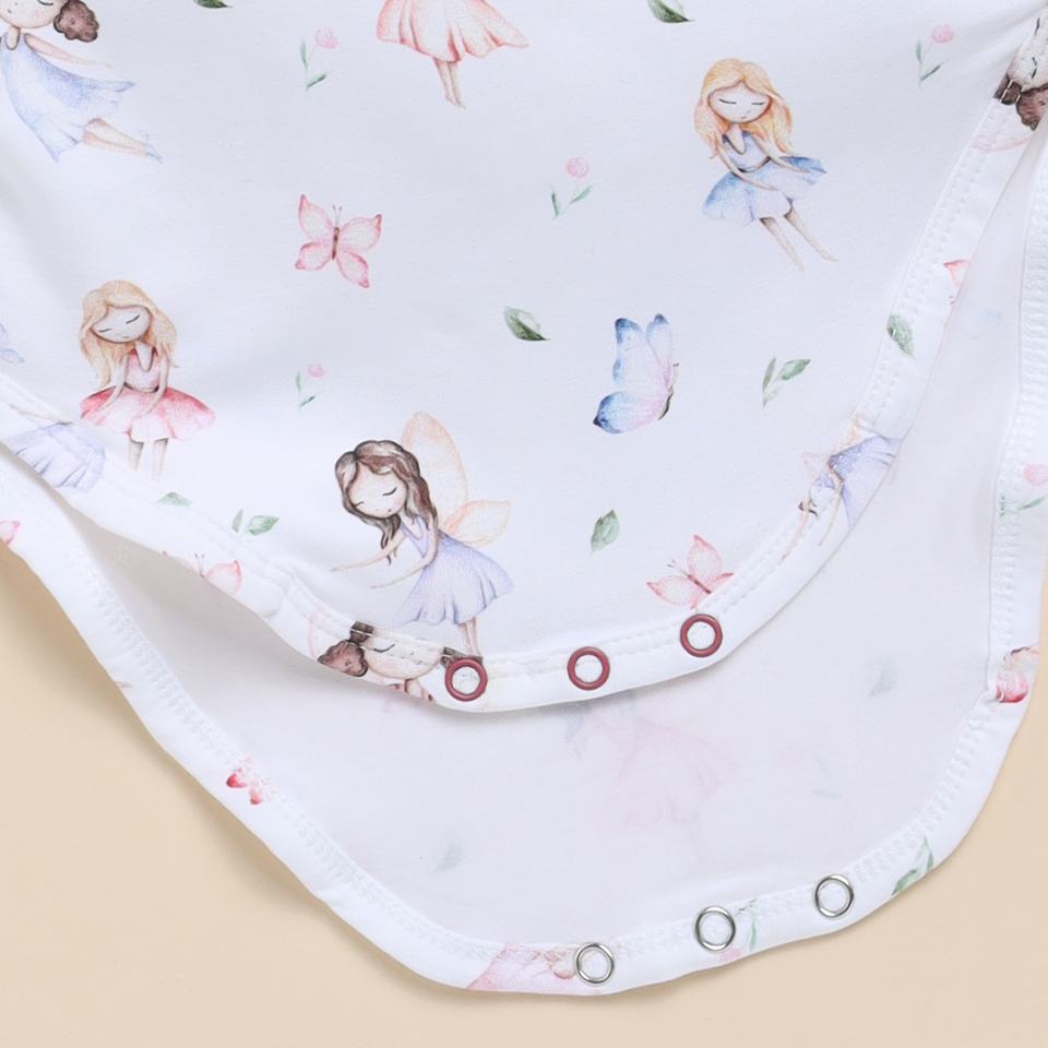 บอดี้สูทแขนยาวผ้าไผ่อีลาสเทนออร์แกนิกสำหรับเด็กชุดชั้นในพิมพ์ลายเป็นฝอยจากเทพนิยาย