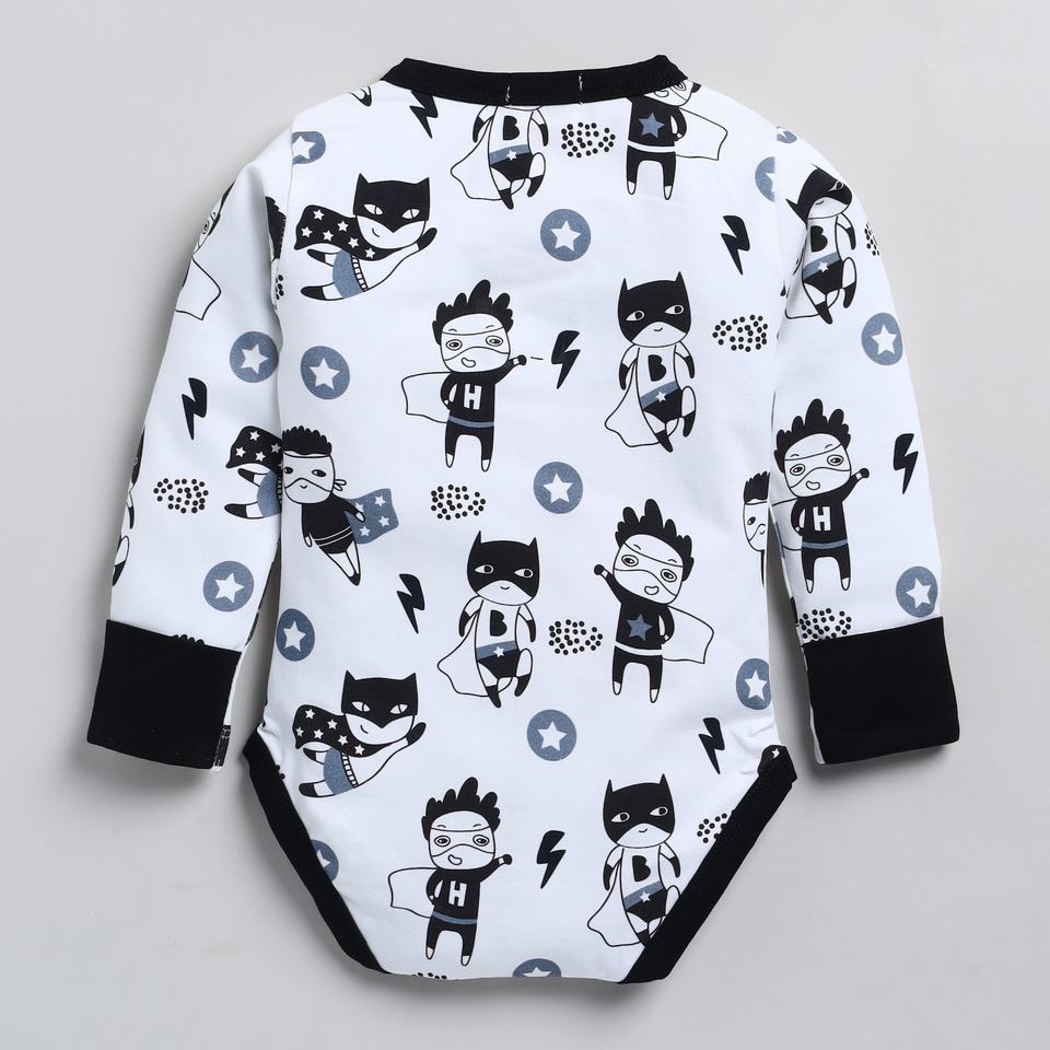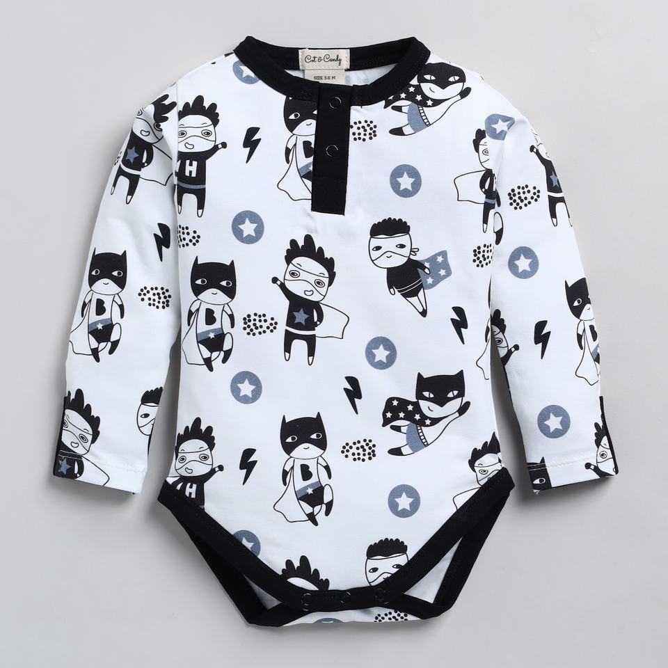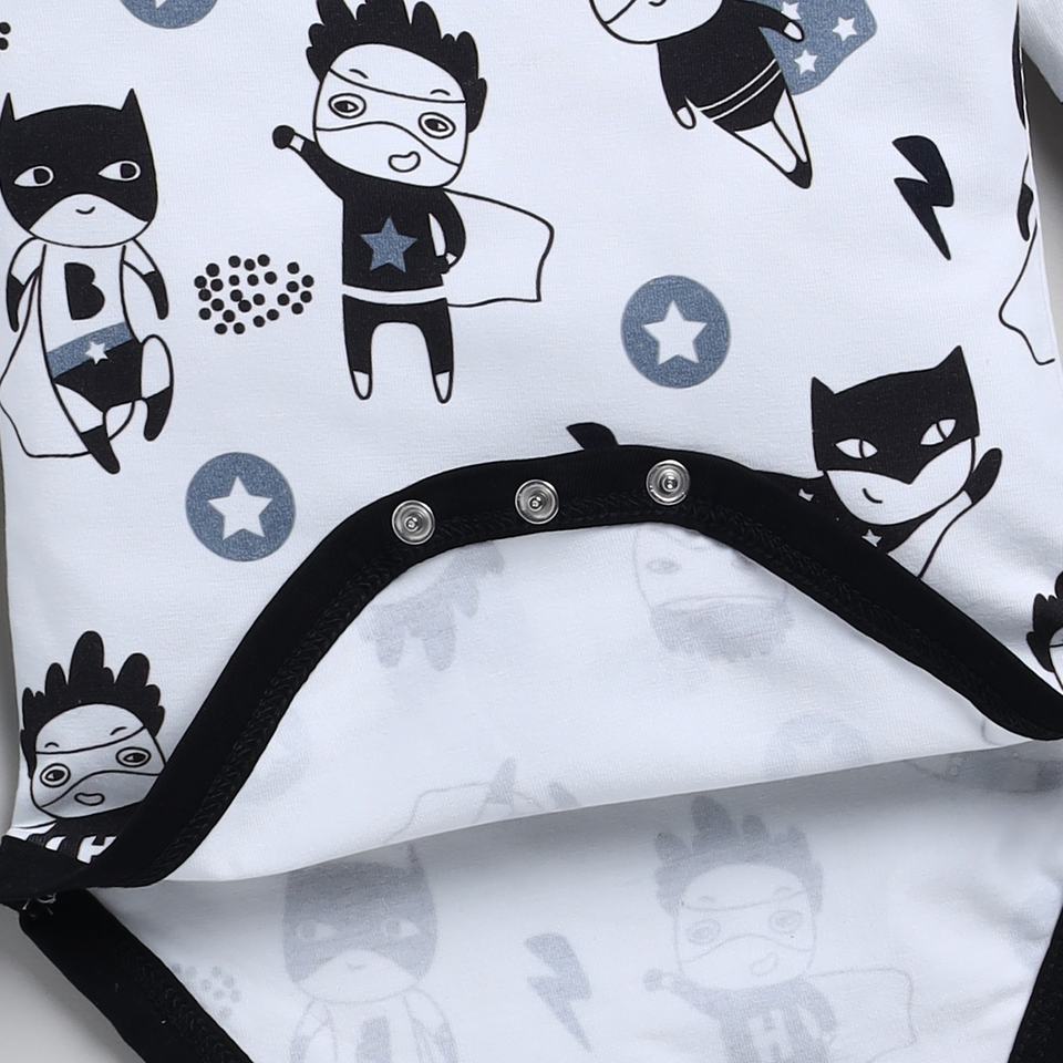 บอดี้สูทแขนยาวพิมพ์ลายซูเปอร์ฮีโร่ยืดหยุ่นจากไม้ไผ่ออร์แกนิกคุณภาพสูง