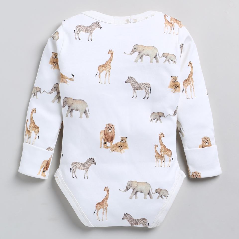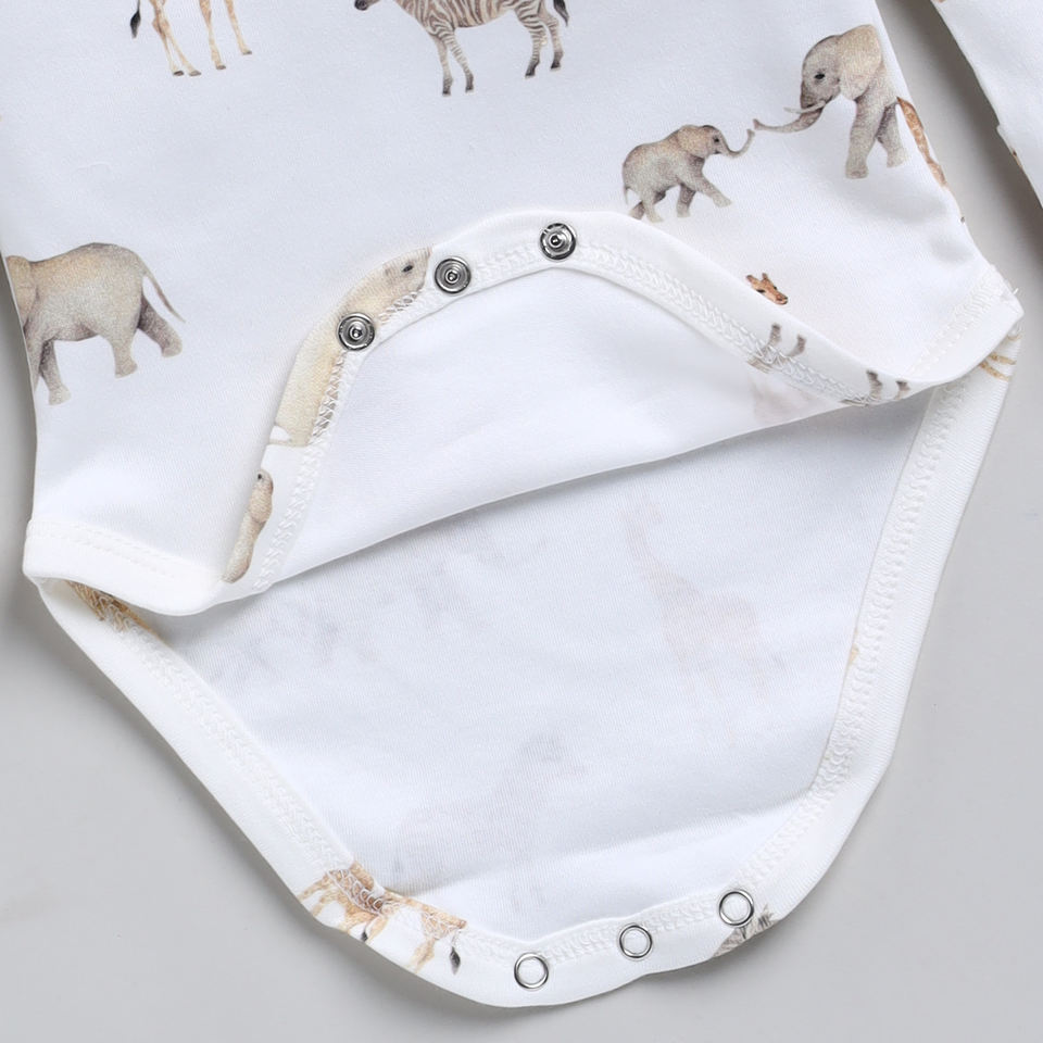 ชุดชั้นในเด็กพิมพ์ลายสะวันนาบอดี้สูทแขนยาวทำจากไม้ไผ่อีลาสเทนออร์แกนิค