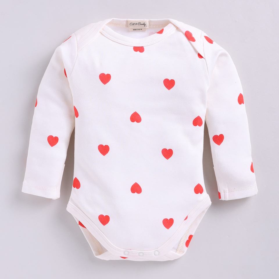 บอดี้สูทแขนยาวทำจากไม้ไผ่อีลาสตินออร์แกนิคสำหรับเด็กเล็กพิมพ์ลายความรัก
