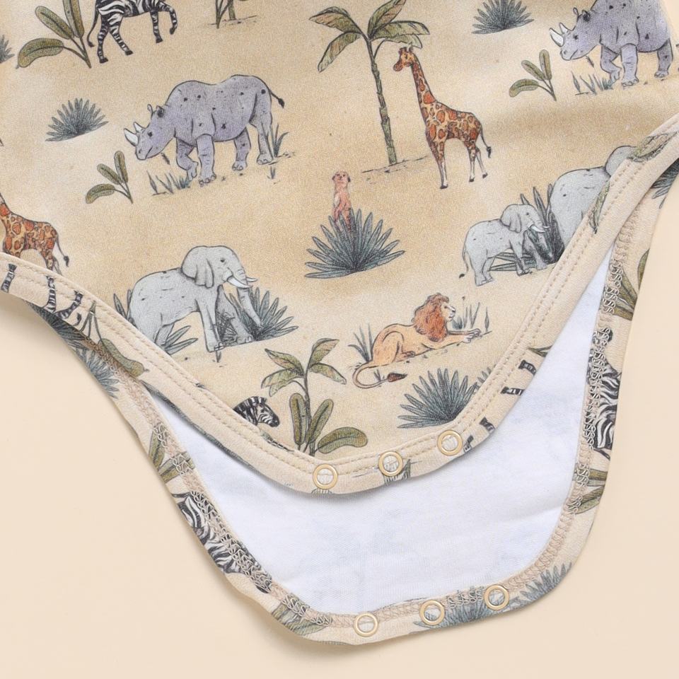 บอดี้สูทแขนยาวพิมพ์ลายซาฟารีชุดชั้นในสำหรับเด็กทารกทำจากไม้ไผ่อีลาสเทนออร์แกนิค