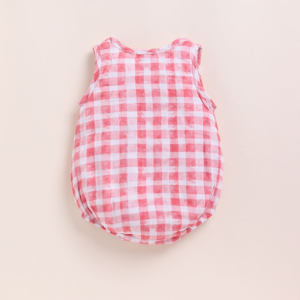 รอมเปอร์ฟองมัสลินออร์แกนิคสำหรับเด็กทารกสีชมพูลายตาราง