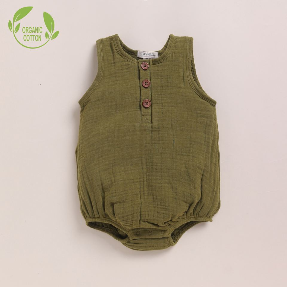 ชุดรอมเปอร์ฟองผ้ามัสลินออแกนิกสำหรับครีม2ชิ้น