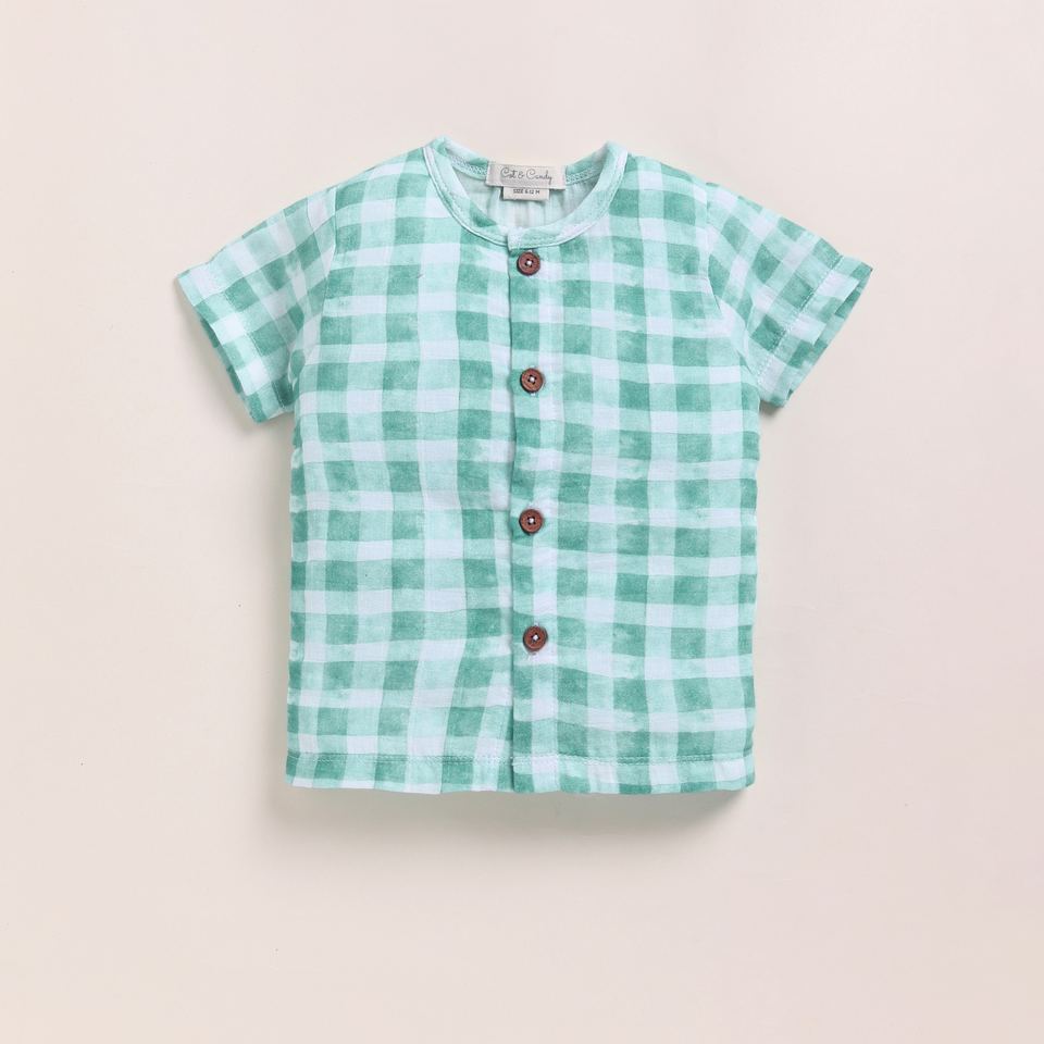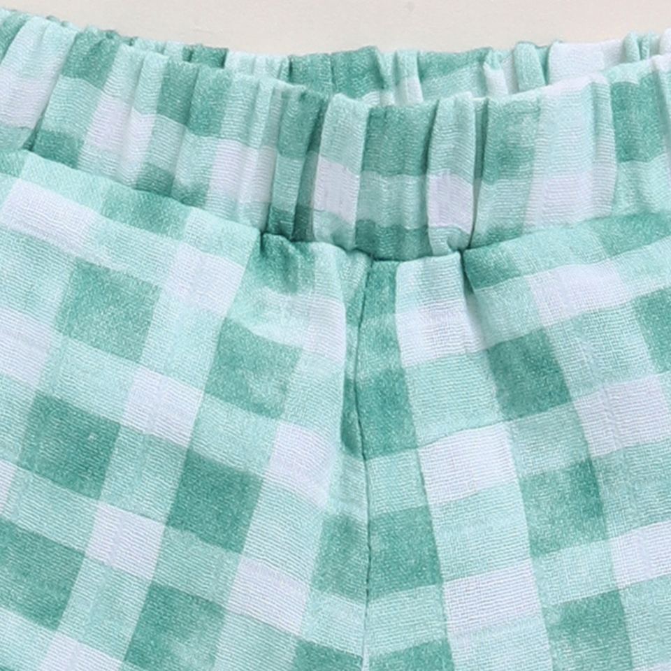 ชุดเสื้อผ้าสำหรับเด็กผ้ามัสลินแจ็บลาพิมพ์ลายตารางสีนกเป็ดน้ำออร์แกนิก
