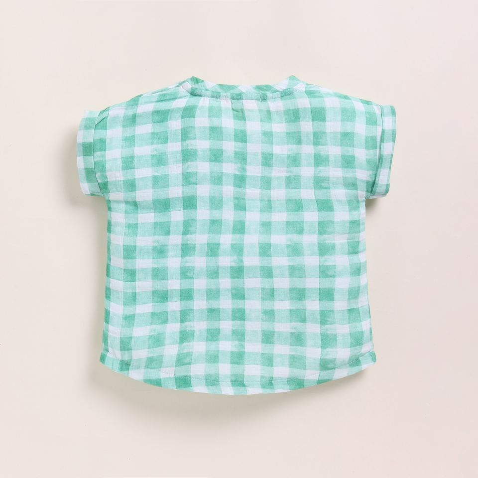 เสื้อยืดเด็กผ้ามัสลินออแกนิกโอเวอร์ไซส์พิมพ์ลายตารางปราชญ์เทคนิคการซัก