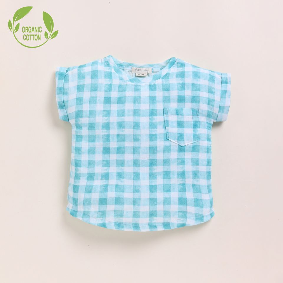 เสื้อยืดผ้ามัสลินออแกนิกโอเวอร์ไซส์พิมพ์ลายสีเขียวหัวเป็ด