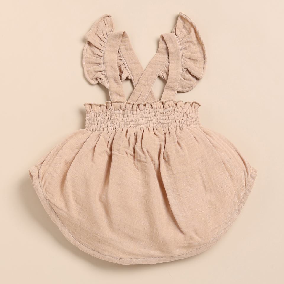 เสื้อแขนกุดผ้ามัสลินสำหรับทารกเสื้อและเสื้อแต่งระบายแขนกุดสีลาเต้ออร์แกนิก