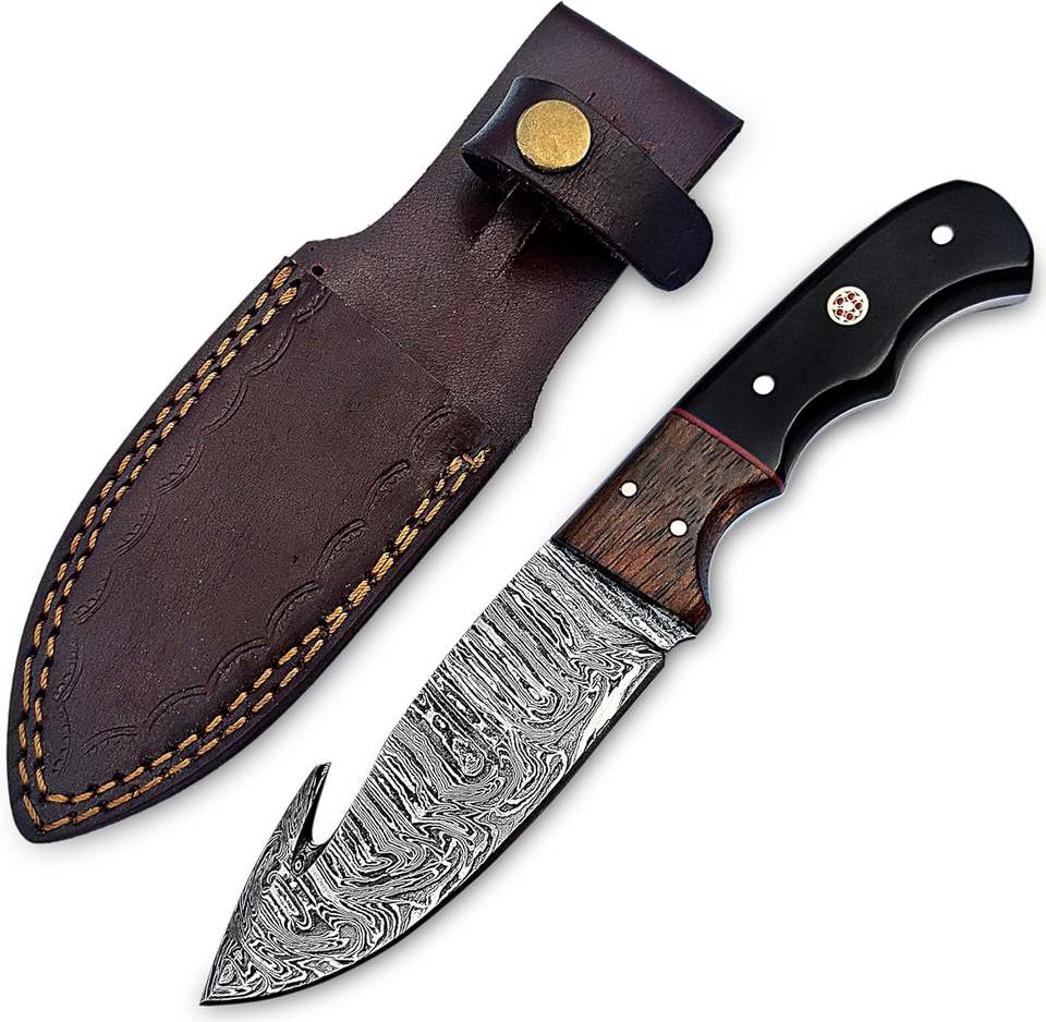 มีดเหล็กดามัสกัสแบบดั้งเดิมคุณภาพพรีเมียมล่าสัตว์กลางแจ้งตั้งแคมป์มีดด้ามแข็งปรับแต่งได้ตัวเลือกใบมีดคงที่