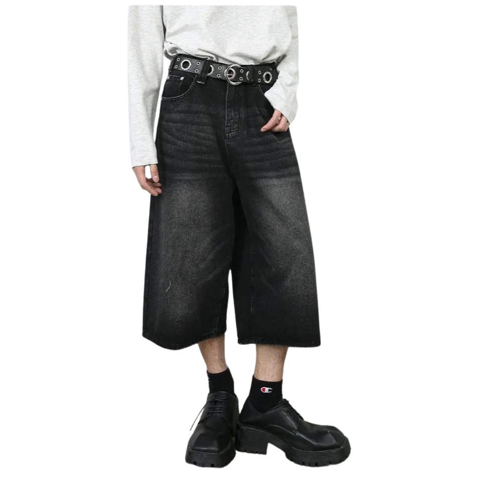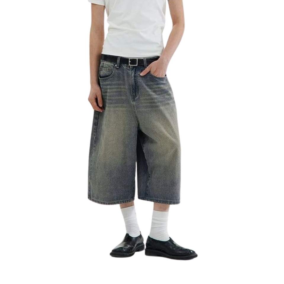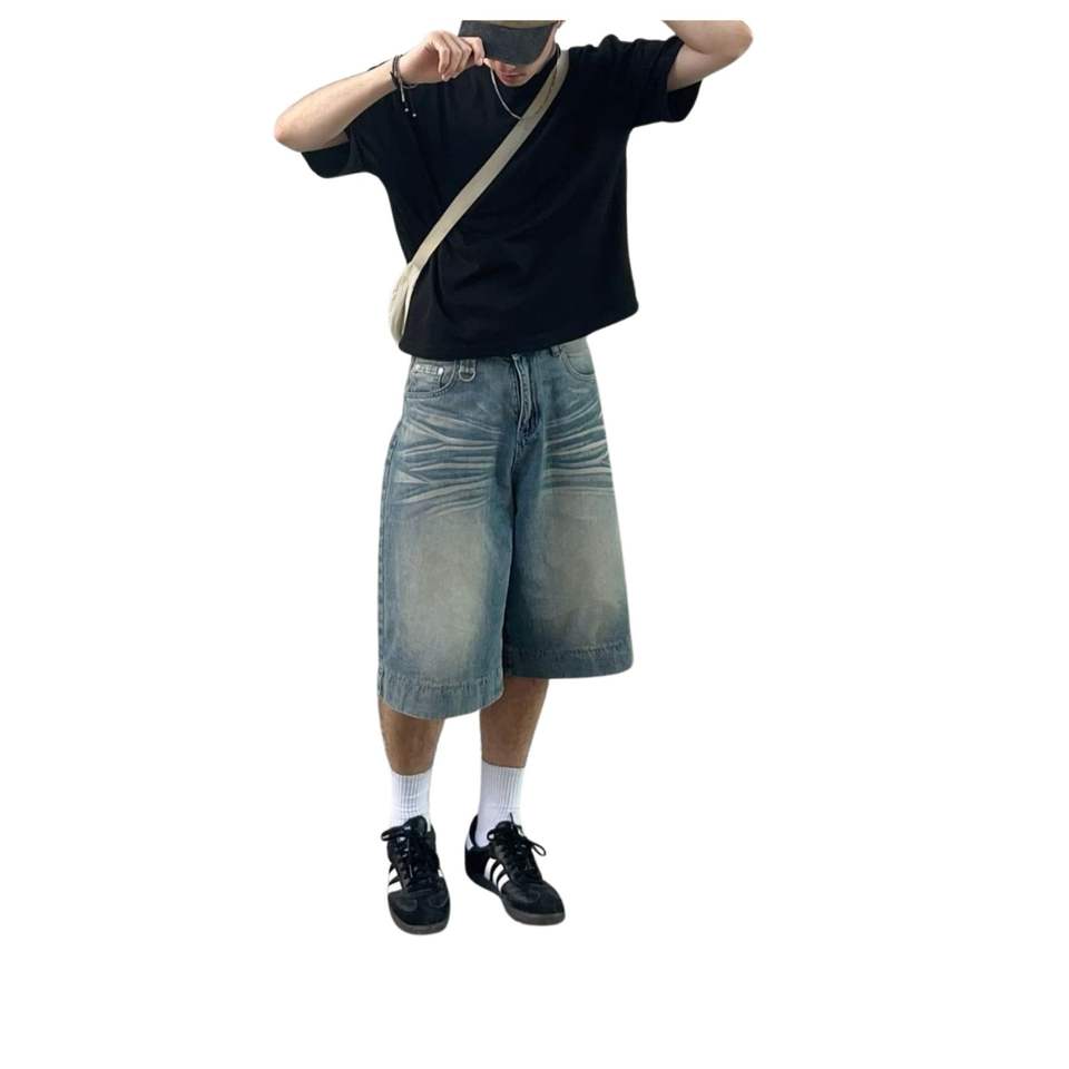 กางเกงยีนส์ขาสั้นทรงโอเวอร์ไซส์คุณภาพพรีเมียมสำหรับผู้ชาย ดีไซน์สั่งทำได้ ทรงขากว้าง สไตล์สตรีทแวร์ ระบายอากาศได้ดี ผลิตจากผ้าฝ้าย มีจำหน่ายแล้ว