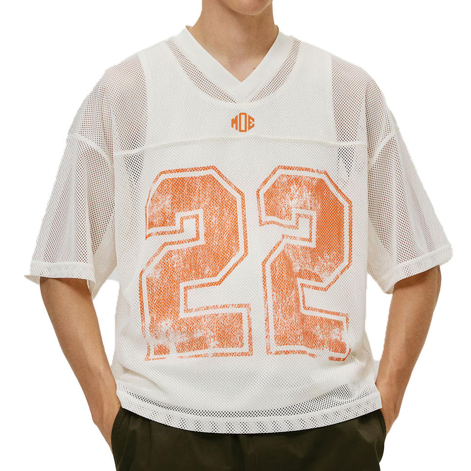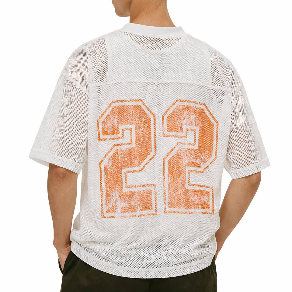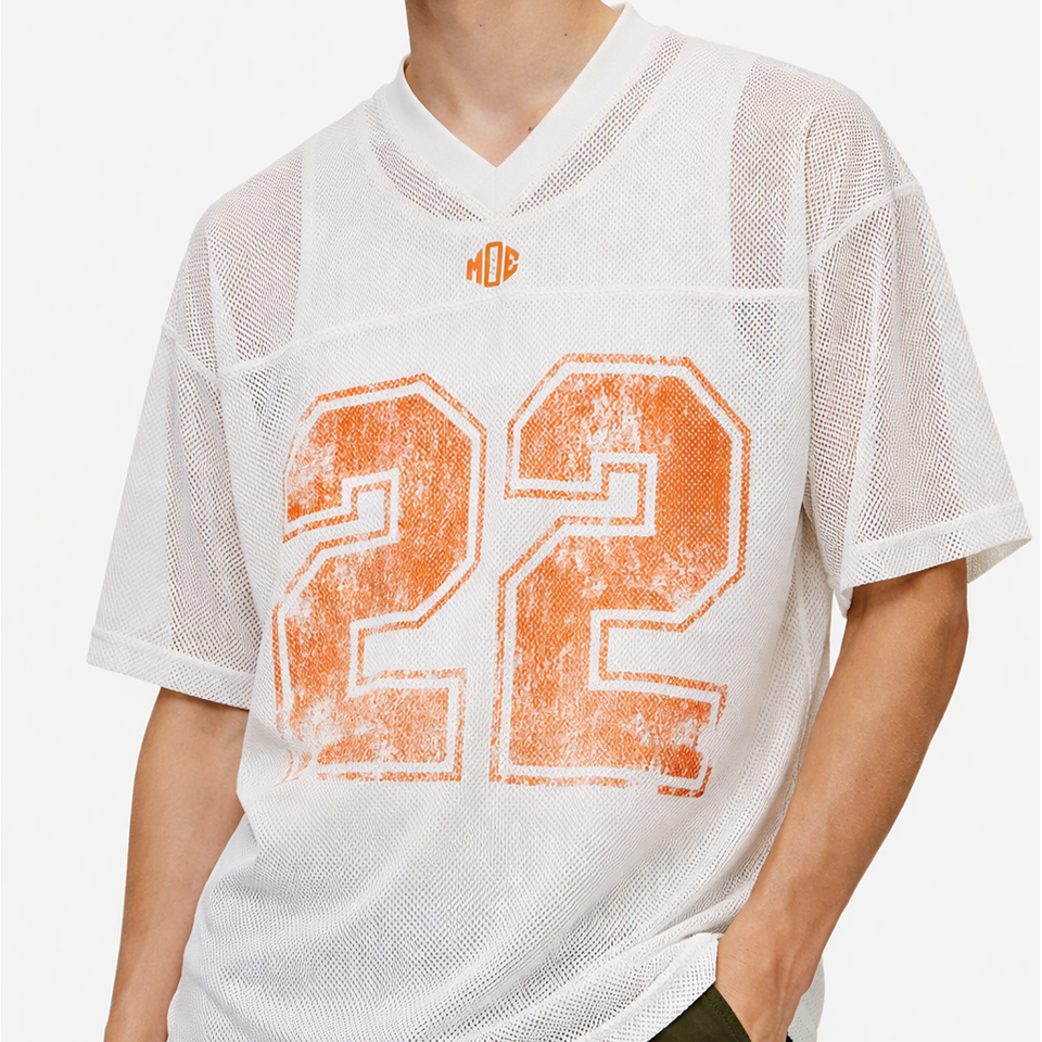เสื้อเจอร์ซีย์อเมริกันฟุตบอลตาข่ายคุณภาพพรีเมียม ไซส์ใหญ่พิเศษ สำหรับผู้ชาย ระบายอากาศได้ดี ผลิตจากโพลีเอสเตอร์ สไตล์สตรีทแวร์ เสื้อกีฬา รับสั่งทำหมายเลขตามต้องการ บริการ OEM