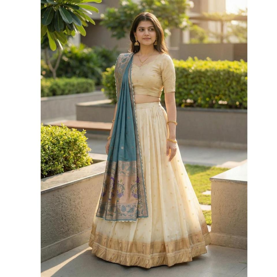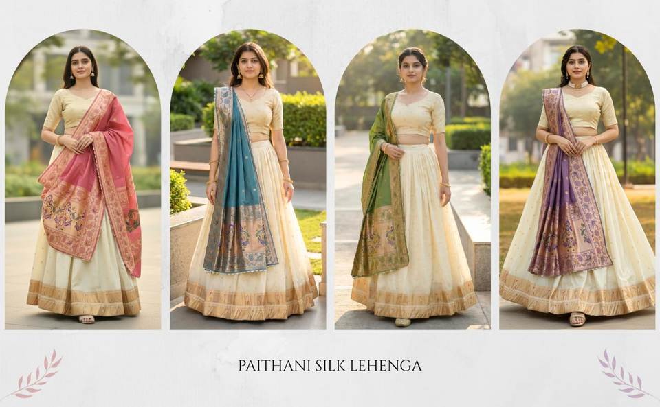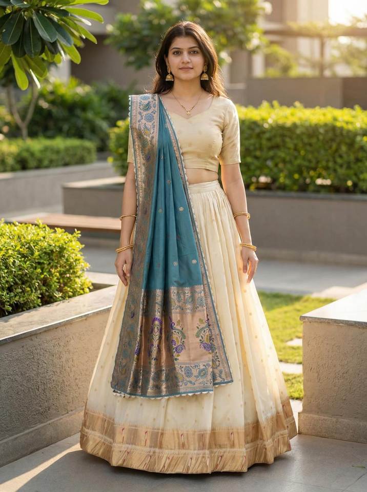 ชุดเลเฮนกาโชลีผ้าไหมพายทานิคุณภาพพรีเมียมแบบยังไม่เย็บติดกัน สำหรับงานเทศกาลและงานปาร์ตี้ ชุดเลเฮนกาโชลีเจ้าสาวปักลาย