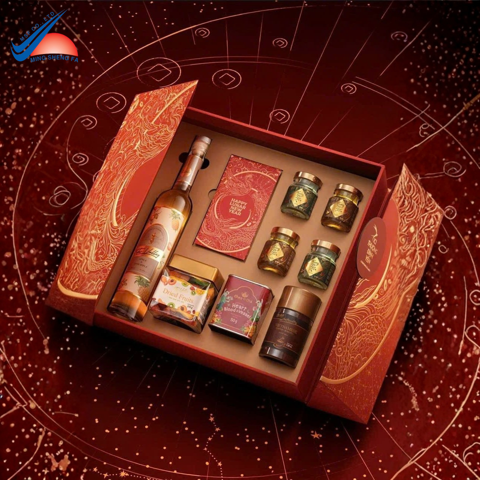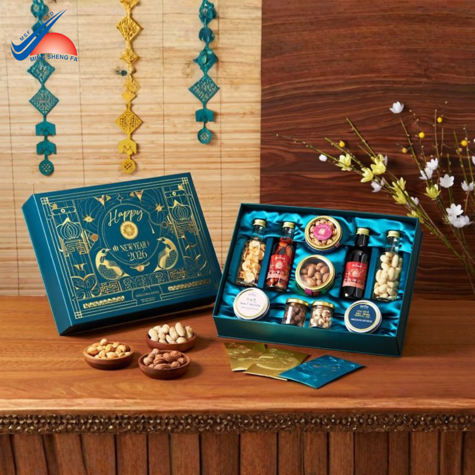 กล่องของขวัญปีใหม่คุณภาพพรีเมียมสำหรับบรรจุอาหาร ชา และของขวัญองค์กร