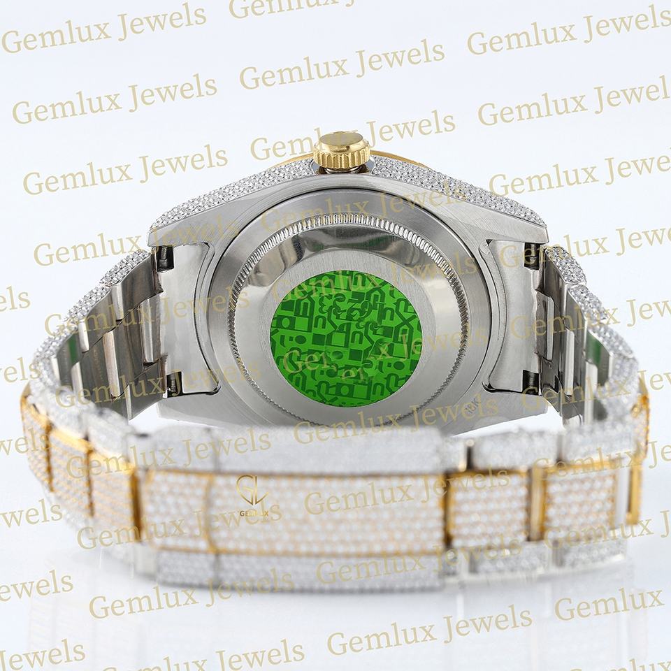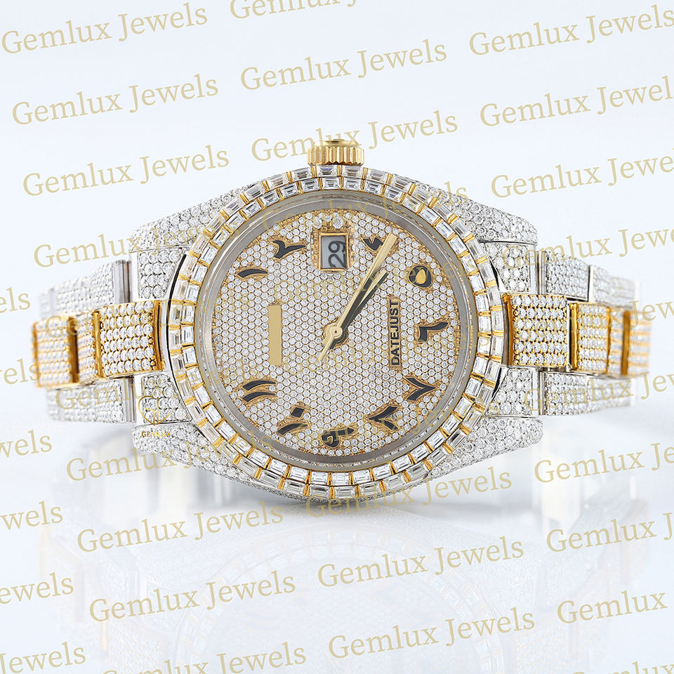 นาฬิกาฮิปฮอปสองสีสำหรับผู้ชายเครื่องทดสอบเพชรคุณภาพระดับพรีเมี่ยมหน้าปัดภาษาอาหรับ