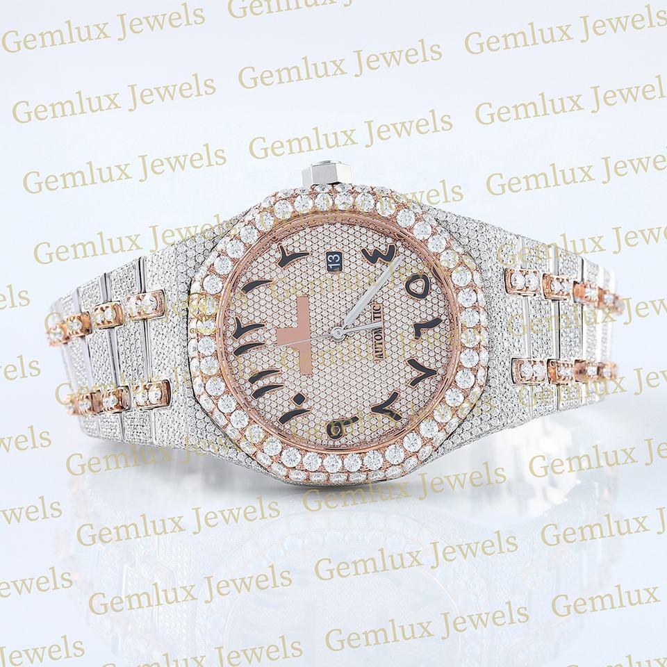 นาฬิกาฮิปฮอปประดับเพชรแบบสองสีโรสโกลด์คุณภาพระดับพรีเมี่ยมสำหรับผู้ชาย