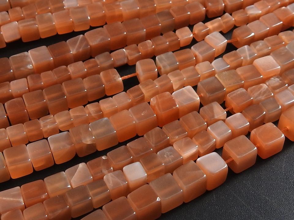 ลูกปัดมูนสโตนสีพีชคุณภาพพรีเมียม ทรงลูกบาศก์ บรรจุกล่อง ทำด้วยมือ 100% ธรรมชาติ สีส้ม ขนาด 5 มม. รับรองคุณภาพ ขายส่ง