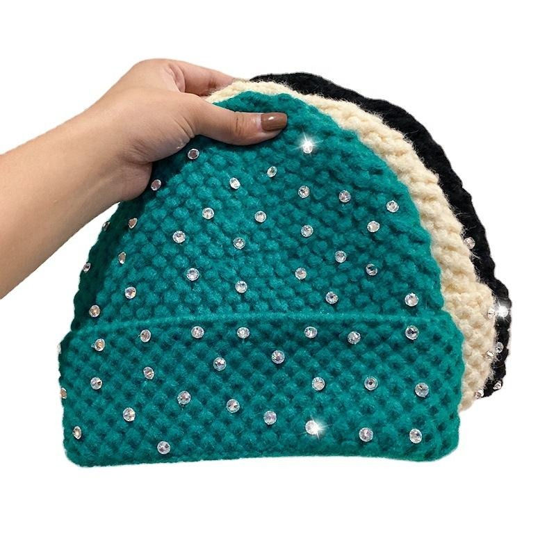 หมวกบีนนี่อะคริลิค 100% คุณภาพพรีเมียม สำหรับฤดูหนาวและฤดูใบไม้ร่วง แบบยูนิเซ็กซ์ ตกแต่งด้วยคริสตัล ราคาโรงงานโดยตรงจากผู้ผลิต