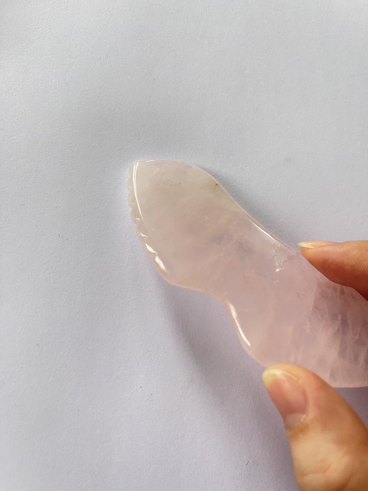 ลูกกลิ้งหยกกัวซาสีชมพูสำหรับดูแลผิวฉลากส่วนตัวอุปกรณ์ดูแลผิวจากหินโรสควอตซ์