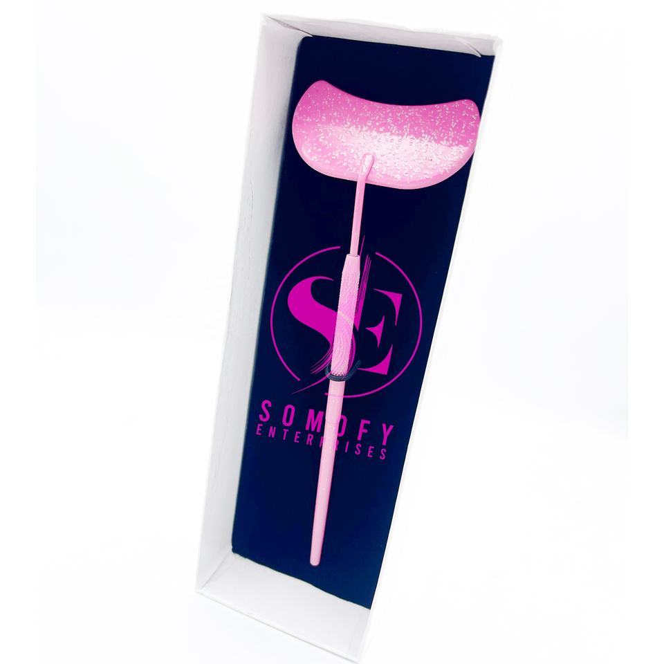 แหนบสแตนเลสทำความสะอาดขนตาแบบโค้งมนอุปกรณ์แชมพูขนตาปลอมสีชมพูแวววาวจับสบายออกแบบโลโก้ได้ตามต้องการ