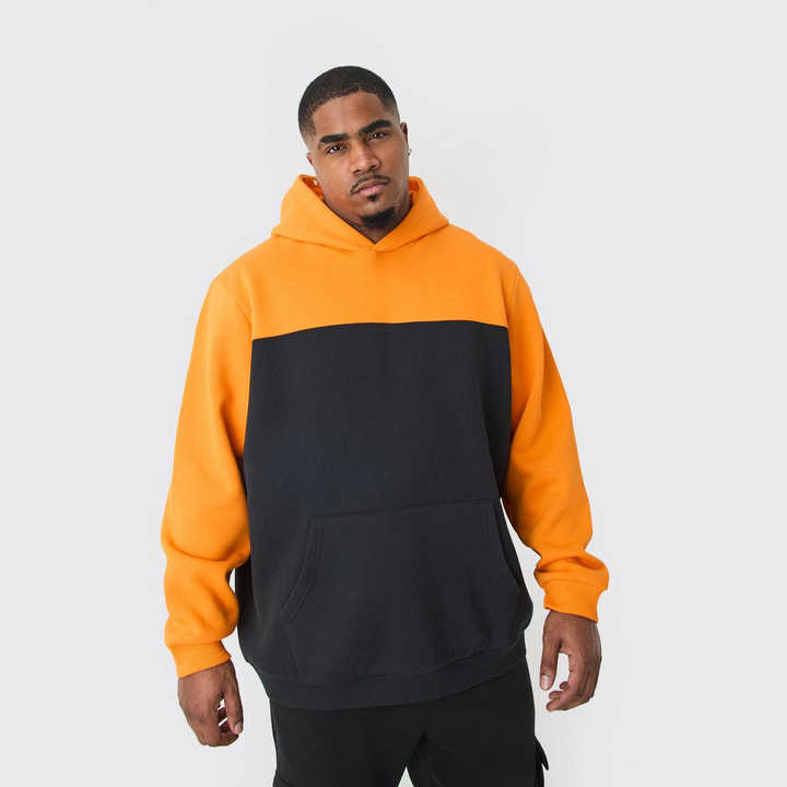 เสื้อฮู้ดดี้ผู้ชายไซส์ใหญ่ ผ้าฝ้ายหนา คุณภาพพรีเมียม ลายบล็อกสี พิมพ์โลโก้ตามสั่ง ทรงโอเวอร์ไซส์